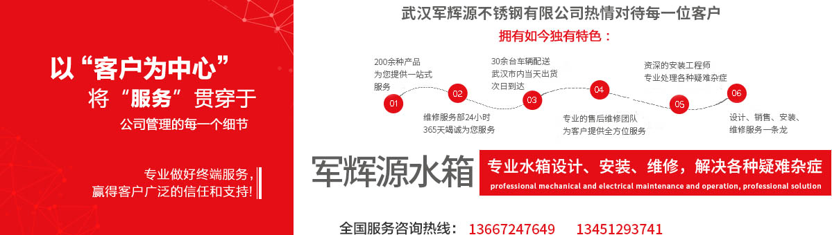 武漢軍輝源不銹鋼有限公司是華中地區(qū)專業(yè)生產(chǎn)不銹鋼水箱的環(huán)保企業(yè),公司集不銹鋼水箱開發(fā)設(shè)計、生產(chǎn)、銷售、維修、售后服務(wù)為一體。